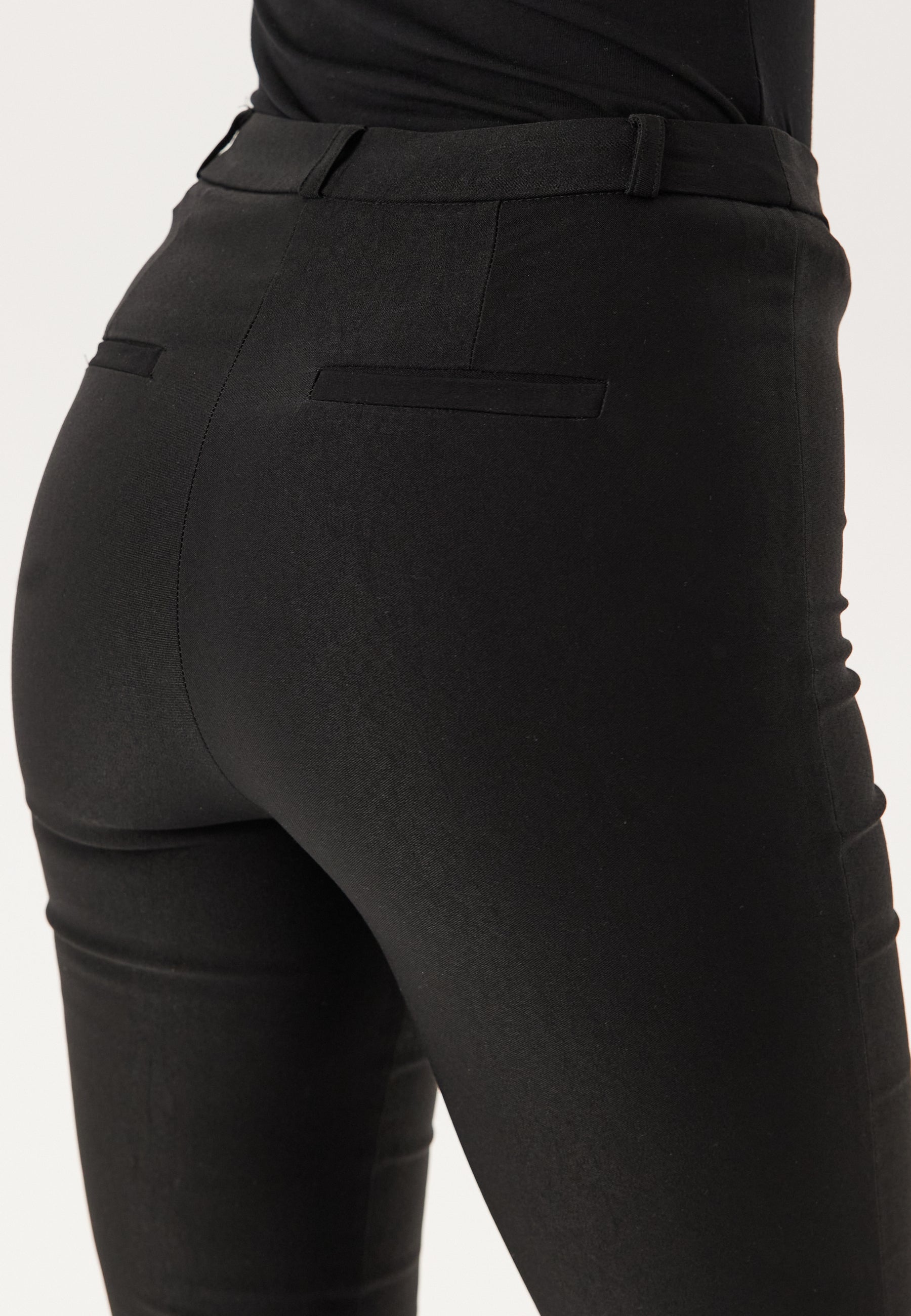 - Skinny fit with a flared leg