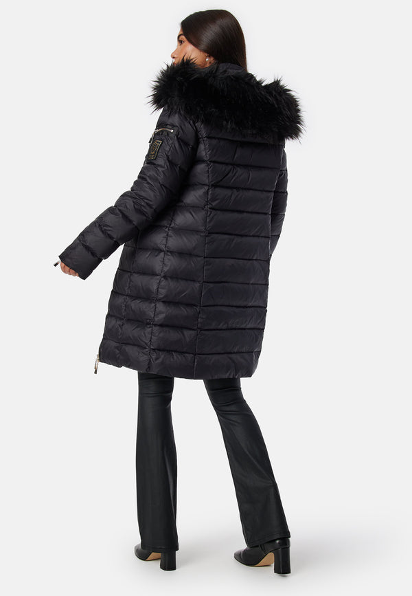 - Hood with removable faux fur trim