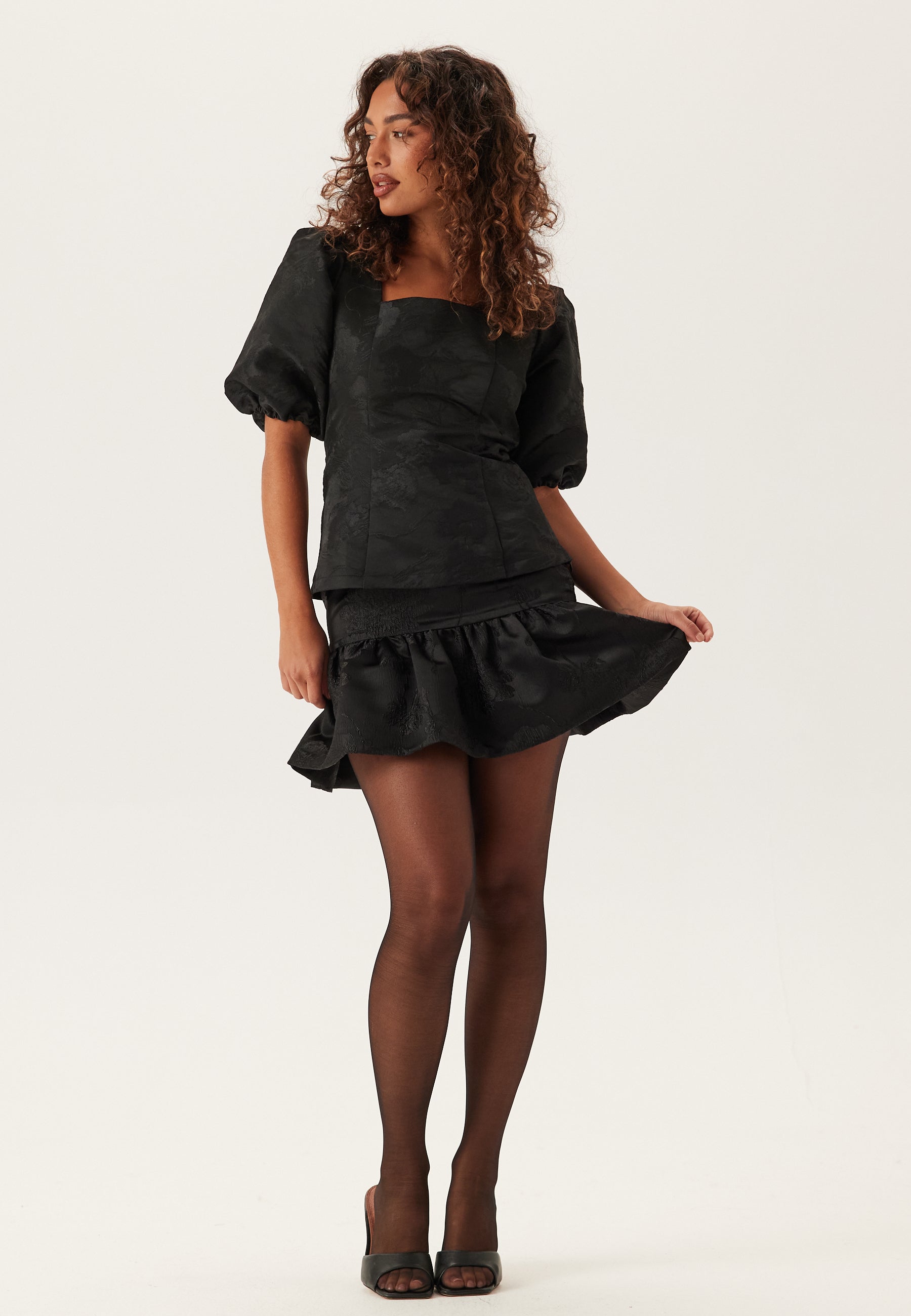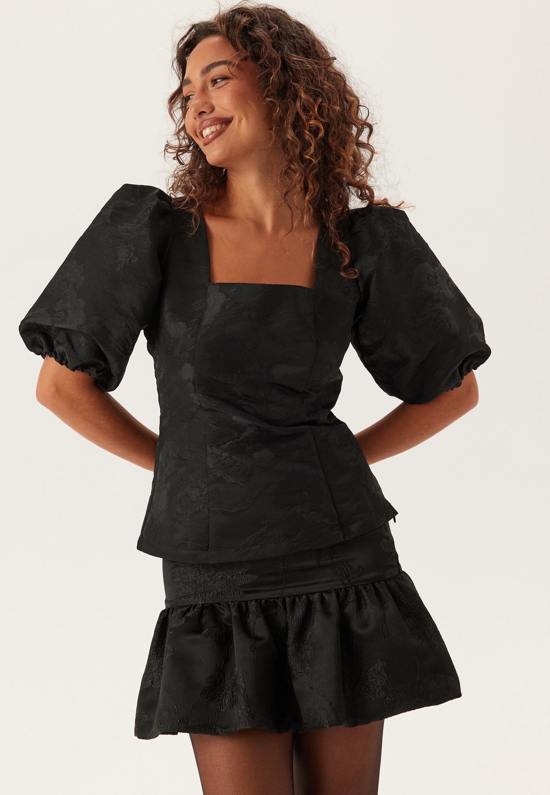 - Pofmouwen met elastiek aan de uiteinden van de mouwen