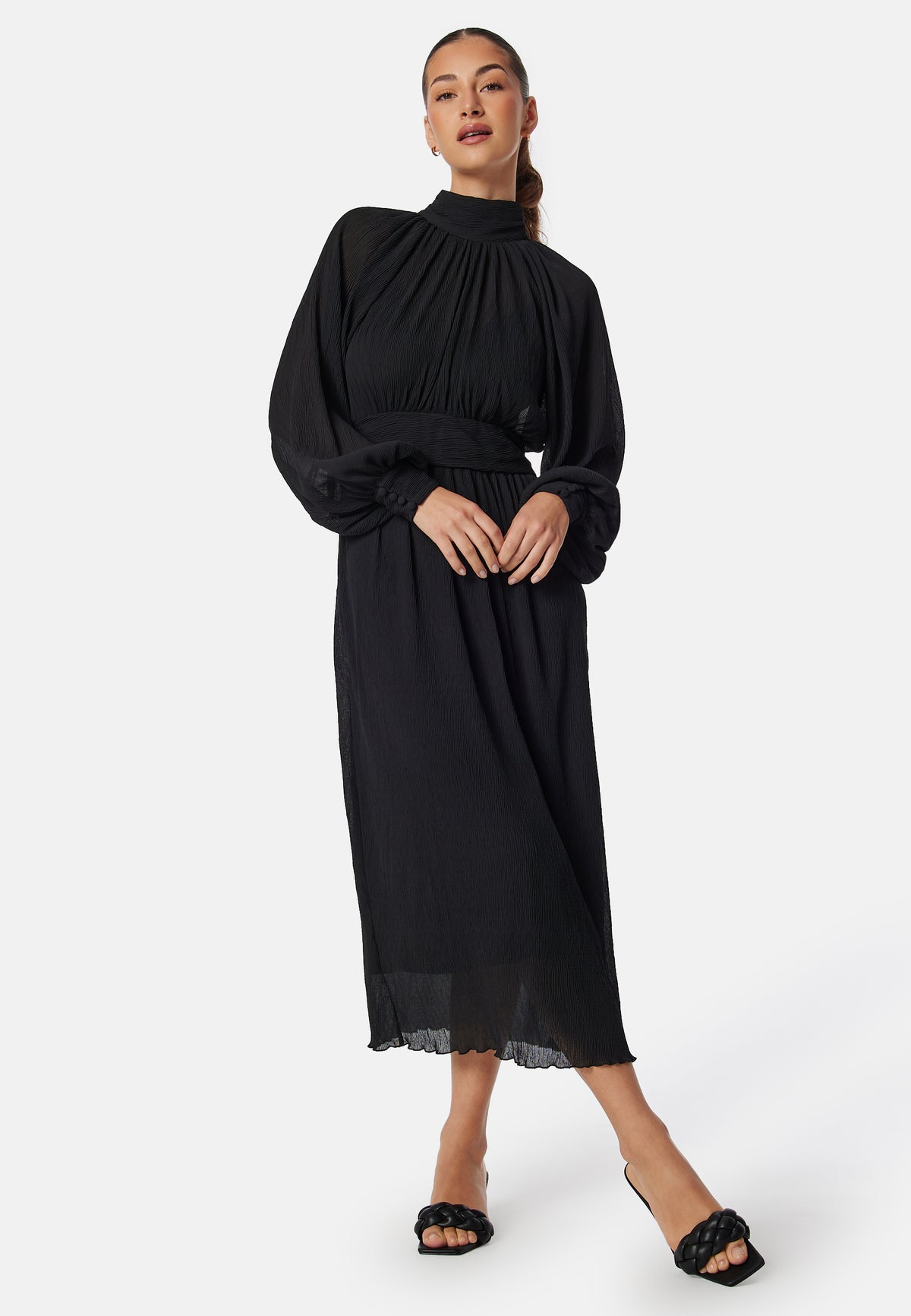 Geplisseerde midi-jurk van Bubbleroom Occasion.
